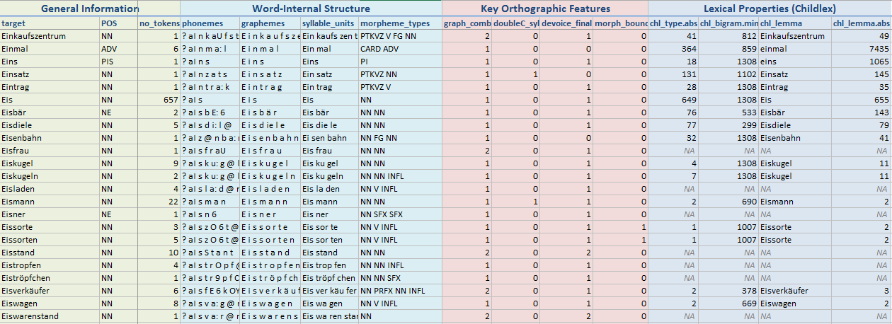 | Litkey-DB | table-based view of the types in the corpus and their annotations, see Laarmann-Quante et al. (2019a); a short description of the columns can be found here | (not all columns shown) |